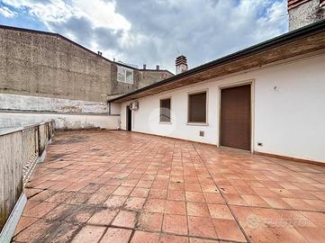 SAN GIOVANNI LUPATOTO - APPARTAMENTO INDIPENDENTE CON TERRAZZO DI 75 MQ Proponiamo in vendita appartamento semi indipendente situato nelle immediate vicinanze del centro di San Giovanni Lupatoto, inserito in un contesto riservato composto da sole due unità abitative. L'immobile si trova al piano primo e si distingue per gli spazi generosi e la favorevole distribuzione interna. L'ingresso conduce a un ampio e luminoso soggiorno dotato di balcone, dal quale si accede direttamente alla cucina abitabile, a sua volta collegata a un grande terrazzo retrostante di circa 75 mq, ideale per momenti di relax all'aperto. Attraverso un comodo disimpegno si sviluppa la zona notte, composta da una camera matrimoniale con accesso al balcone, una camera singola con uscita sul terrazzo e due bagni finestrati, di cui uno particolarmente ampio e luminoso completo di vasca e un secondo più raccolto dotato di doccia e lucernario, con possibilità di accesso a una botola che conduce al sottotetto. Al piano terra sono presenti due box auto, attualmente separati da basculante ma internamente comunicanti, mentre sempre dallo stesso livello si accede, tramite una porta dedicata, alla zona seminterrata, raggiungibile anche dall'abitazione, dove si trovano una taverna con camino e ulteriori locali ad uso cantina. L'immobile è libero da subito e, pur presentandosi in buone condizioni generali, necessita di interventi di ristrutturazione per valorizzarne appieno le potenzialità e adattarlo alle esigenze abitative moderne. Si precisa che alcune delle immagini presenti nell'annuncio sono rendering realizzati con l'ausilio dell'intelligenza artificiale, con finalità puramente illustrative per suggerire possibili soluzioni di ristrutturazione e una diversa organizzazione degli spazi. Si informa inoltre che le utenze risultano attualmente condivise con l'appartamento al piano terra; è già presente la predisposizione per la separazione degli impianti e dei contatori, i cui costi di realizza