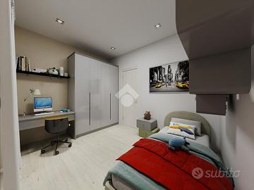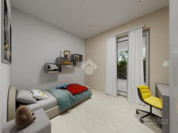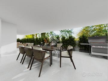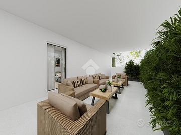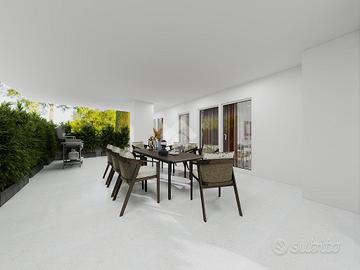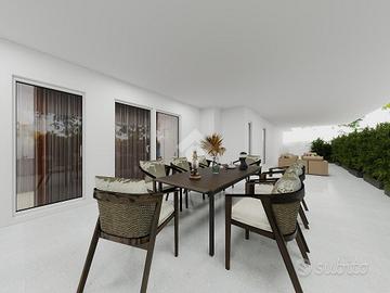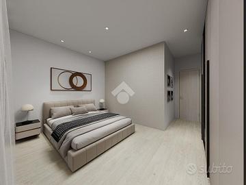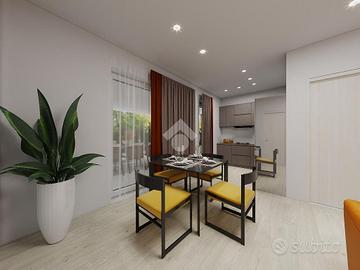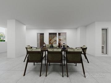 In splendido contesto residenziale di ultima realizzazione, proponiamo ampio appartamento al piano terra con corte esclusiva di proprietà. L'immobile si dispone di ingresso su ampio soggiorno e cucina a vista con accesso diretto alla corte esclusiva, disimpegno della zona notte, tre ampie camere da letto e due bagni. L'immobile si trova in fase di ultimazione delle finiture e la consegna è prevista per i primi mesi del 2026. I pavimenti sono in gress effetto legno in tutti gli ambienti ad eccezione dei bagni, il riscaldamento è a pavimento di tipo autonomo con pompa di calore, aria condizionata in tutti gli ambienti, l'immobile viene consegnato completo di split a parete. Pannelli fotovoltaici. Infissi in PVC bianco a taglio termico. L'appartamento è completo di cantina e autorimessa compresa nel prezzo.