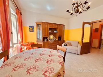 Ampio alloggio a San Lorenzo al mare, a pochi passi dal mare e dalla pista ciclopedonale, perfettamente servita e immersa nella tranquillità di un piccolo condominio. Al piano rialzato, varcata la porta d'ingresso, un luminoso corridoio accompagna all' ampia zone giorno: un soggiorno accogliente inondato di luce e una cucina, pratica e funzionale.