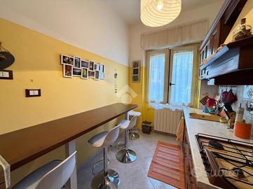 Ampio alloggio a San Lorenzo al mare, a pochi passi dal mare e dalla pista ciclopedonale, perfettamente servita e immersa nella tranquillità di un piccolo condominio. Al piano rialzato, varcata la porta d'ingresso, un luminoso corridoio accompagna all' ampia zone giorno: un soggiorno accogliente inondato di luce e una cucina, pratica e funzionale.La zona notte si compone di due camere da letto, spaziose e silenziose, e di un bagno dotato di confortevole box doccia. Completa l'abitazione un pratico ripostiglio, per tenere sempre in ordine ogni cosa. L'immobile è pronto da vivere, senza necessità di lavori di ristrutturazione, grazie al riscaldamento autonomo ed alle spese condominiali contenute - appena 700 € annui.All'esterno, un posto auto condominiale scoperto e, al piano seminterrato, una comoda cantina. Inoltre, un magazzino adiacente con un piccolo giardino privato, perfetto come secondo parcheggio o come spazio verde dove rilassarsi.Vivi ogni giorno la brezza marina e la comodità dei servizi a portata di mano: contattaci subito al 0183 91313 o via WhatsApp al per maggiori informazioni e per organizzare la tua visita!Per ulteriori informazioni o per fissare una visita, potete contattarci allo 0183 91313 oppure tramite WhatsApp al