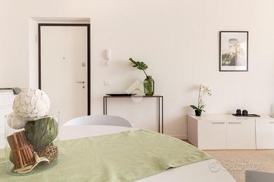 Entrando troviamo ad accoglierci un'ampia zona giorno, con accesso al primo balcone.