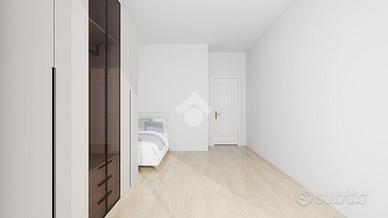 Un disimpegno ci conduce nella zona notte. Essa è composta da una camera matrimoniale con bagno finestrato privato, da altre due camere singole, da un secondo servizio cieco e una zona lavanderia.