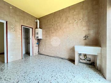 L'immobile è così composto: dal vano scale interno, accediamo all'ingresso dell'immobile che separa la cucina abitabile, con ripostiglio, e l'ampio soggiorno, entrambi con accesso al primo balcone.