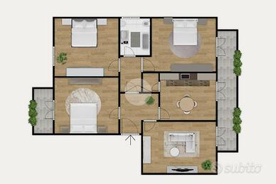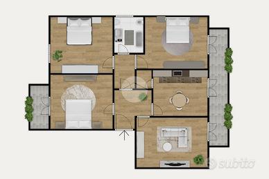 Proseguendo nella zona notte, troviamo tre camere da letto matrimoniali, tutte comprensive di accesso al balcone, e il bagno finestrato con vasca.