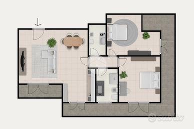 La zona giorno è composta da due generose camere da letto e due bagni, di cui uno cieco e uno finestrato.