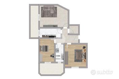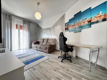 L'immobile è così composto: ampio disimpegno all'ingresso che divide la zona giorno dlla zona notte, soggiorno con accesso al primo balcone, cucina separata, una camera da letto matrimoniale, una camera doppia con accesso al terrazzo, un bagno finestrato con doccia e infine un comodo ripostiglio.