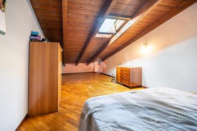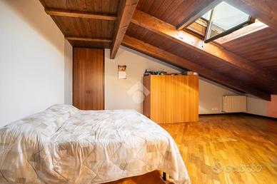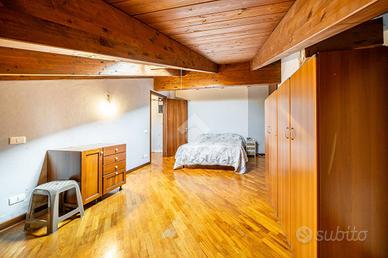 Tramite la scala di design a vista sul soggiorno si accede alla zona notte composta da 2 camere da letto matrimoniali con il tetto in legno a vista che pur essendo mansardato risulta ampiamente sfruttabile.