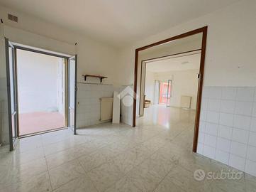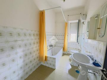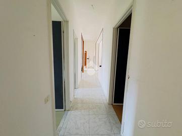 L'immobile è composto da cucina abitabile con accesso al terrazzo, ampio salone con balcone, due camere da letto matrimoniali, entrambe finestrate, e doppi servizi: uno con doccia e finestra, l'altro con vasca e finestra.