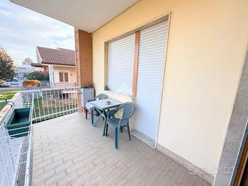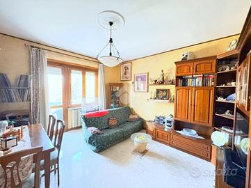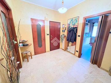 L'appartamento è composto da ingresso su comodo disimpegno che divide gli ambienti, cucina e soggiorno di generose dimensioni, entrambi con uscita sul terrazzino, due ampie camere da letto collegate da un lungo balcone e, infine, bagno finestrato ristrutturato verso la fine degli anni '90.