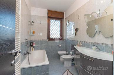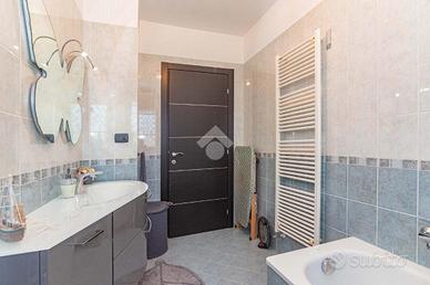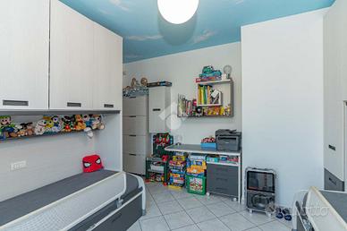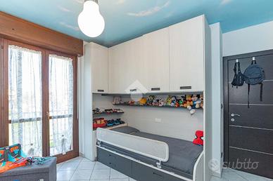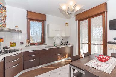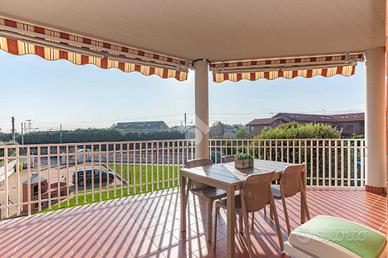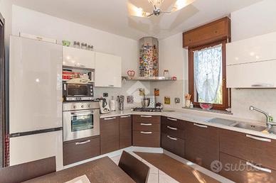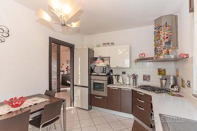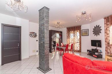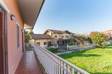 LIBERO SUBITO. In prossimità di una delle zone residenziali di San Maurizio Canavese, situato in casa trifamiliare in paramano esterno di recente costruzione, APPARTAMENTO al primo piano, libero su quattro aree con terrazzo. L'immobile si presenta in ottime condizioni interne ed è subito disponibile Lo stabile, del 2009, è dotato di ascensore e l'appartamento è privo di barriere architettoniche. L'ingresso, tramite porta blindata, è sul soggiorno luminoso con pompa di calore aria calda/fredda e la cucina è abitabile. Entrambi gli ambienti hanno l'affaccio sul terrazzo di 22 mq dotato di tende da sole motorizzate con sensore vento. Il disimpegno conduce al bagno con vasca, camera da letto matrimoniale, camera doppia e bagno con doccia adibito anche a lavanderia. La zona notte ha l'affaccio sul balcone. Gli infissi esterni sono in legno, dotati di camera doppia, tapparelle coibentate e zanzariere. La caldaia è autonoma a metano a condensazione ed è presente l'antifurto perimetrale e volumetrico e il videocitofono. Completa la proprietà il box auto doppio di 50 mq piastrellato con basculante motorizzata. Ottima soluzione per tutte le famiglie che vogliono un immobile bello, spazioso, luminoso, in un piccolo contesto senza amministratore e comodo a tutti i servizi che il paese offre e anche al Raccordo Torino - Caselle Aeroporto!