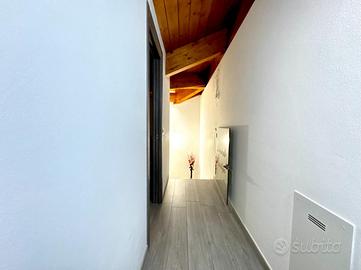 SAN MAURO PASCOLI In una delle zone più richieste di San Mauro proponiamo appartamento dalle metrature comode e ben distribuite, in palazzina con ingresso condiviso da sole due abitazioni. L'ingresso principale si trova al piano primo e l'immobile si apre su un'ampia e luminosa zona giorno open space di circa 40 mq, valorizzata dall'accesso diretto al balcone loggiato, ideale per momenti di relax. Sullo stesso piano troviamo una camera da letto matrimoniale e un bagno finestrato con box doccia. Grazie ad una comoda scala in muratura accediamo al piano mansardato, dalle altezze vivibili ed unico per le sue travi in legno a vista, qui si sviluppa la zona notte composta da una camera da letto dotata di cabina armadio, una cameretta e lavanderia con predisposizione di attacchi per la realizzazione di un secondo bagno. Completa la proprietà un garage di 26 mq al piano seminterrato. L'appartamento è dotato di impianto di aria condizionata ed infissi in triplo vetro. Ideale per chi ricerca una soluzione moderna, dagli spazi funzionali e in posizione centrale. Per maggiori informazioni o per organizzare una visita non esitare a contattarci allo o al