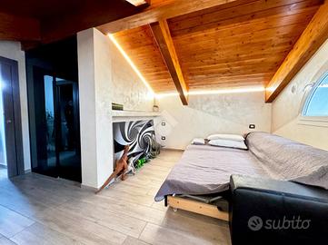 Grazie ad una comoda scala in muratura accediamo al piano mansardato, dalle altezze vivibili ed unico per le sue travi in legno a vista, qui si sviluppa la zona notte composta da una camera da letto dotata di cabina armadio, una cameretta e lavanderia con predisposizione di attacchi per la realizzazione di un secondo bagno.