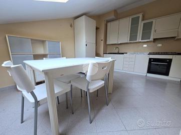 L'ingresso è diretto sul soggiorno con porta finestra a condurre al balcone e la cucina è abitabile con parete cottura lineare.