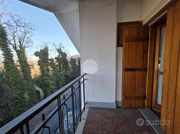 L'ingresso è diretto sul soggiorno con porta finestra a condurre al balcone e la cucina è abitabile con parete cottura lineare.
