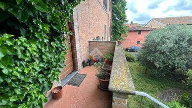 Entrando dal portone si ha la zona giorno composta da ampio e luminoso soggiorno con angolo cottura dal quale si accede, tramite portafinestra, alla terrazza della casa.