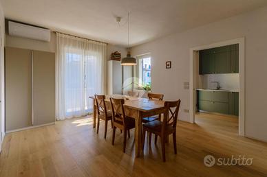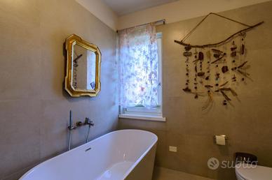 Dal corridoio centrale si accede alla zona notte composta da uno spazioso bagno con doccia e balcone, una camera matrimoniale, due camere doppie, di cui una con balcone privato, un secondo bagno finestrato con vasca ed infine un comodo ripostiglio.