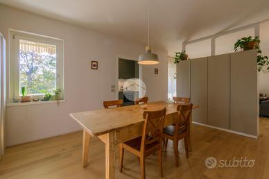 Completano la proprietà il giardino privato al piano terra, che delimita la casa su due lati, una spaziosa cantina ed un garage doppio in larghezza con doppia basculante.
