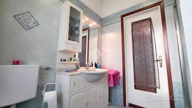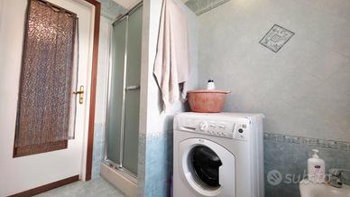 Il disimpegno si collega conseguentemente al ripostiglio e al bagno disposto su pianta quadrata con finestra e box doccia, il quale è stato soggetto a ristrutturazione.