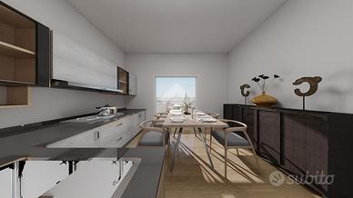 Entrando, si viene accolti da una zona giorno elegante e ariosa, dove il soggiorno si apre su un balcone con spazio a terrazzo, perfetto per godersi momenti di relax all'aperto. La cucina, ampia e abitabile, regala la stessa sensazione di apertura grazie all'affaccio sul terrazzo, ideale per pranzi e cene in compagnia.