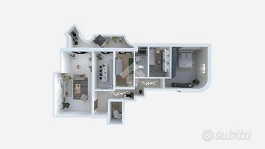 La disposizione interna offre spazi ampi e versatili: troviamo tre camere da letto, di cui due matrimoniali ed una doppia, un bagno finestrato, un ampio soggiorno con affaccio sul spazioso balcone, cucina abitabile anch'essa, con affaccio su balcone ed un'ulteriore stanza adibita a ripostiglio. Un balcone vivibile consente di godere di uno spazio esterno riservato e piacevole.