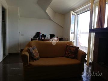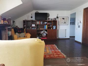 San Vito R: In prossimità del centro abitato , in contesto riservato e tranquillo si propone appartamento attico posto al piano quarto di una palazzina senza ascensore, di ampia metratura (112mq), composto da ingresso, cucina abitabile con balcone, salone con camino funzionante e balcone, due camere da letto con balcone e doppi servizi igienici. In discreto stato abitativo e termo autonomo, l'appartamento gode di una vista panoramicissima sulla bellissima vallata ed il bosco adiacente, ben assolato ideale come prima abitazione. Completa la proprietà una cantina di c/a 11mq.