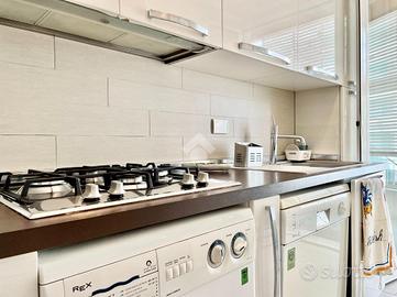 L'appartamento si trova al penultimo piano, entrando i suoi 99 mq ti accolgono con un soggiorno arioso che si apre sul terrazzo, ideale per colazioni all'aperto o serate in totale privacy. La camera matrimoniale, anch'essa con accesso diretto al terrazzo, è un rifugio di quiete. La cucina è separata, funzionale e ben illuminata, mentre la seconda camera, con il suo bagno privato, garantisce privacy e indipendenzai. A completare la composizione, si ha un ulteriore bagno ampio e finestrato.