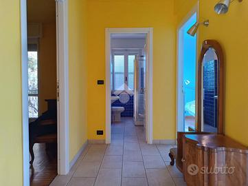 L'ingresso accompagna in un accogliente soggiorno, separato dalla cucina abitabile, entrambi spazi ben organizzati e pensati per la vita quotidiana. La zona giorno, insieme a una delle camere da letto, si affaccia su un ampio balcone con esposizione verso il mare, regalando una vista aperta e una piacevole continuità tra interno ed esterno, ideale per momenti di relax all'aria aperta.