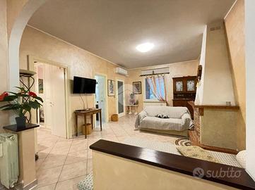 Nel cuore di Sanremo, proponiamo in vendita una casa semidipendente di estensione. Questa soluzione ha zero spese di gestione e il riscaldamento è autonomo. La casa è composta da un ampio ingresso con uno spazioso armadio a muro e sgabuzzino. Il soggiorno è di notevoli dimensioni con un camino funzionante. La cucina è abitabile con l'accesso diretto sul giardino. La prima camera da letto è matrimoniale e luminosa, la seconda camera anche essa matrimoniale ha il suo bagno privato con la finestra e la doccia, inoltre ha una portafinestra che affaccia su uno spazio esterno. Il secondo bagno è ben disposto con la vasca. Completa la proprietà con l'ampio giardino e al suo interno è presente una comoda lavanderia.
