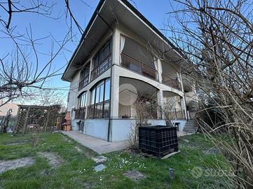 Nel cuore del suggestivo borgo Bertassi a Sant'Ambrogio di Torino, proponiamo un appartamento di circa 90 mq al piano terra. Questa proprietà offre un ambiente accogliente e funzionale ideale per chi cerca spazio e comfort. L'alloggio è composto da ingresso sul disimpegno, soggiorno con cucina a vista, due camere da letto, e ampia sala da bagno con vasca. Tramite la scala interna in legno si accede al piano inferiore dove si sviluppano una spaziosa tavernetta, la lavanderia ed il garage. Uno dei punti di forza di questa casa è il giardino privato, perfetto per momenti di relax all'aria aperta, accompagnato da un cortile che aggiunge ulteriore spazio esterno. Il terrazzo offre un'area ideale per cene estive o per godersi il panorama circostante. Completa la proprietà un comodo garage, che garantisce praticità e sicurezza per il parcheggio. Il riscaldamento autonomo assicura un controllo ottimale dei consumi, mentre l'assenza di spese condominiali rappresenta un vantaggio economico significativo. Una soluzione abitativa che unisce comfort e praticità in una posizione ben servita.