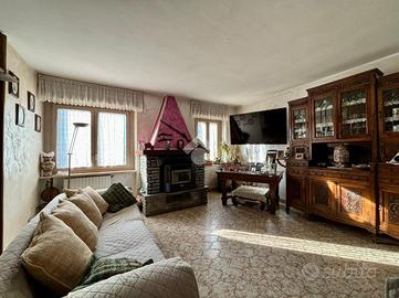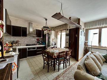 L'appartamento si trova al primo piano in una palazzina situata in una zona tranquilla e soleggiata del paese, ma allo stesso tempo comoda ai servizi. L'ingresso è nel disimpegno che ci accompagna nell'ampio soggiorno con camino a pellet ed adiacente ad esso vi è la cucina abitabile che affaccia sul terrazzo verandato di generosa metratura. Le due camere sono matrimoniali ed una di esse ha l'uscita sul balcone; il bagno è finestrato con la doccia. Il riscaldamento è autonomo a metano. Completano la proprietà una cantina, un box auto, un giardino ed un orto privato.