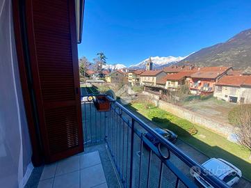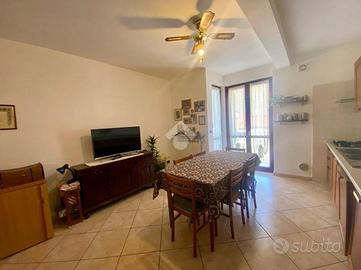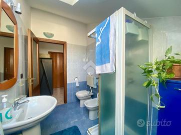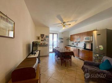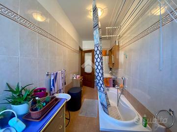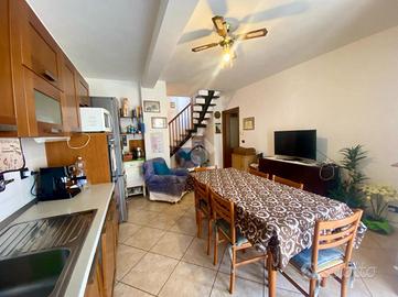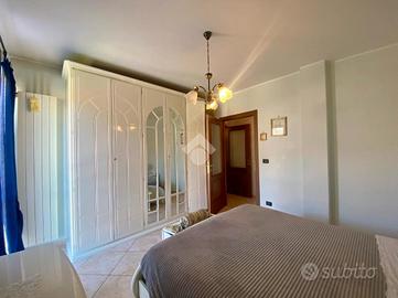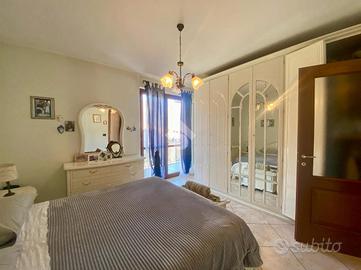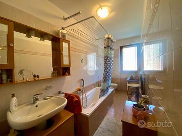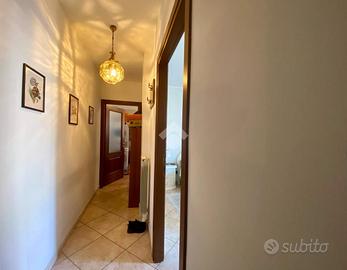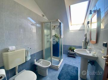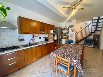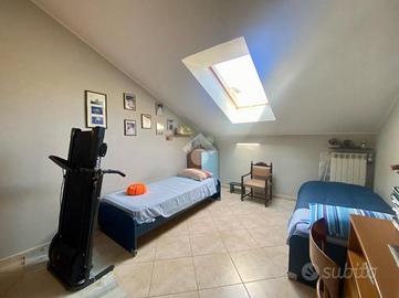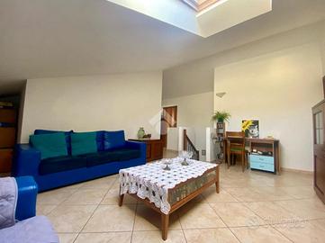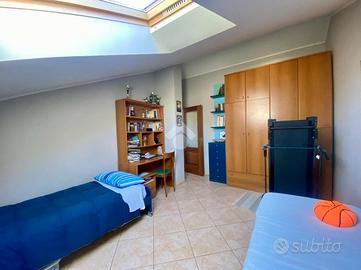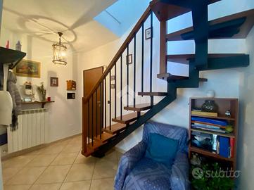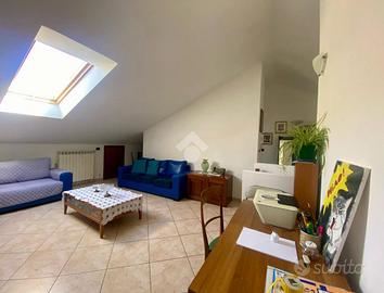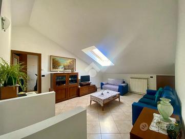 L'ingresso è nel soggiorno con angolo cottura che affaccia sul balcone; tramite il disimpegno si accede nella prima camera da letto matrimoniale, anch'essa con l'uscita sul balcone e al bagno finestrato con la vasca. La scala comoda in legno ci accompagna nel sottotetto abitabile dove ad ospitarci vi sono le altre due camere da letto, il secondo bagno finestrato che ha la doccia e un rispostiglio. Il riscaldamento è autonomo a metano.