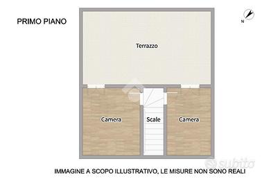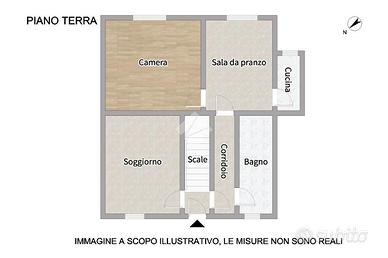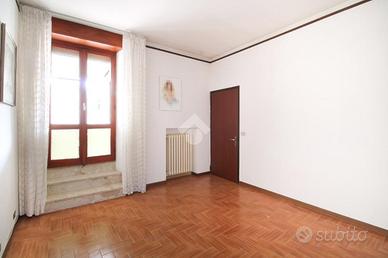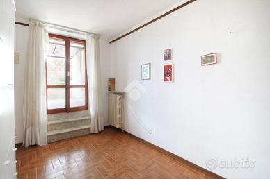Al piano terra troviamo un luminoso soggiorno con retrocucina, due stanze attualmente adibite a studio e camera matrimoniale, oltre a un bagno finestrato con doccia. Salendo al piano superiore sono presenti due camere matrimoniali, entrambe con accesso al terrazzo. Al secondo piano si trova una soffitta, mentre nel seminterrato sono presenti il garage e la cantina.