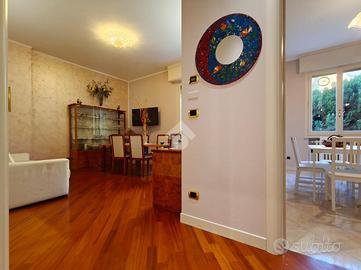 Particolare attenzione è stata riservata alle finiture: in tutta la casa (esclusi bagno e cucina) troviamo un elegante pavimento in parquet, che dona calore e continuità agli ambienti, mentre i controsoffitti con faretti impreziosiscono gli spazi conferendo un tocco moderno e raffinato.