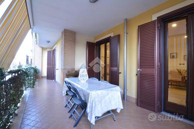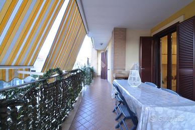 All'interno la soluzione oltre ad essere in ottimo stato, vanta una generosa metratura, composta da: un ingresso che si apre direttamente su un ampio salone living con angolo cottura dedicato. Il tutto accompagnato da uno spazioso terrazzo vivibile fronte strada ideale per ospitare anche 8 persone comode. Parlando della zona notte troviamo tre ampie camere da letto che, essendo servite da due bagni spaziosi, la rendono una soluzione fruibile a tutte le diverse esigenze quotidiane. Completano la proprietà un garage di 20 mq con posto auto di fronte alla propria carrabile, ed un posto auto assegnato dal condominio.