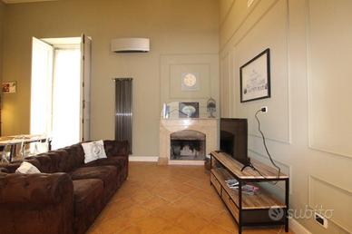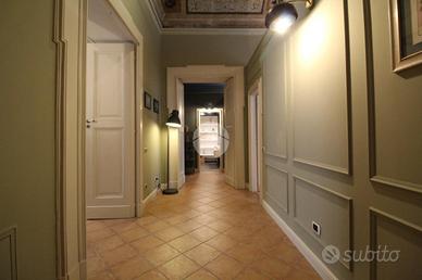 L' agenzia Tecnorete propone in vendita, esclusiva, un affascinante appartamento (recentemente ristrutturato nel 2022) situato in un palazzo storico, Questa residenza di ampia metratura, unisce il fascino dell'antico con il comfort del moderno, offrendo ampi soffitti e un doppio affaccio che garantisce luminosità e ventilazione naturale. L'appartamento ha accesso in un accogliente ingresso che anticipa la zona giorno; soggiorno con camino a legna, sala da pranzo/cucina, tre spaziose camere da letto di cui una con cabina armadio, due bagni e un'ulteriore lavanderia/ripostiglio. Gli interni sono stati aggiornati con infissi di qualità e una caldaia efficiente, mentre l'aria condizionata assicura un ambiente confortevole tutto l'anno. Balcone con affaccio interno al cortile e balconi d'affaccio su strada. La proprietà include il parcheggio nel cortile, una comodità rara in centro città. Questa casa caratteristica rappresenta una soluzione funzionale per chi cerca un'abitazione che coniughi storia e modernità.