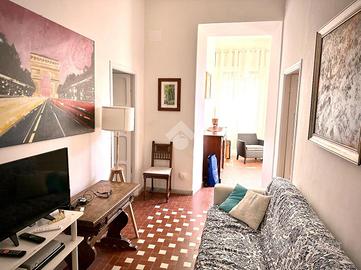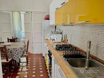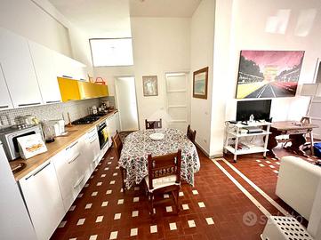 L'immobile, di circa 90 mq, è arricchito da soffitti alti e dettagli originali dell'epoca. Si compone di soggiorno come zona living, luminosa sala da pranzo con cucina a vista attrezzata, tre camere da letto spaziose, due bagni finestrati e giardino privato, perfetto per pranzi all'aperto e momenti di relax