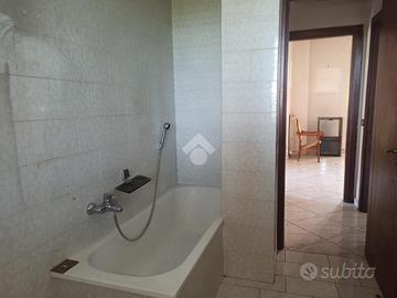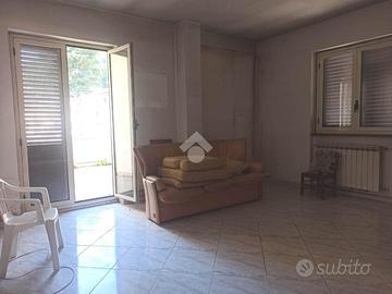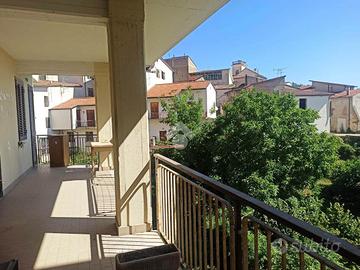SANTA PAOLINA - Via Roma. Nella pieno centro del paese, all'interno di un fabbricato costruito nel 1999, proponiamo la vendita di un appartamento con box auto di pertinenza. La palazzina è costituita da due piani fuori terra ed uno seminterrato. Al piano terra sono collocate due unità, di cui una adibita a studio medico ed una adibita ad abitazione, percorrendo la scala interna condominiale si raggiunge il piano primo, dov'è ubicato l'immobile oggetto di vendita. Sul ballatoio del piano vi è un locale ripostiglio a servizio esclusivo dell'appartamento ed una botola che da accesso al vano sottotetto attualmente unico ambiente. L'ingresso è dotato di un proprio punto luce, ed è diviso dal salone, rendendo riservata la zona giorno. Il salone è di grandi dimensioni ed è articolato da un primo tratto adibito a soggiorno, servito di un balcone e di canna fumaria, un secondo tratto adibito a sala da pranzo con accesso diretto al terrazzo, che gode di una buona esposizione, ottimo per organizzare pranzi in famiglia o con amici, per godersi la lettura di un buon libro e/o per organizzare una zona solarium. Tutti gli ambienti descritti hanno affaccio sulla Via Roma. La cucina è abitabile ed è dotata di una zona adibita a lavanderia, a seguire il bagno padronale e le due camere da letto. Tutti gli ambienti hanno l'accesso esterno sulla stessa balconata, che si affaccia sul prospetto posteriore del fabbricato e da cui si può ammirare un panorama verdeggiante. La balconata ha una profondità tale da poter posizionare un dondolo, un tavolo colazione e per poter ospitare piante ornamentali. Le condizioni dell'immobile sono abitabili, si consiglia il rifacimento del bagno e della cucina, nonchè una tinteggiatura a tutti gli ambienti. Gli infissi sono in pvc col vetrocamera, esternamente sono presenti scuretti in pvc. Ad impreziosire l'appartamento come già accennato, vi sono il terrazzo di circa 20 mq oltre a due balconate che complessivamente raggiungono la superfici