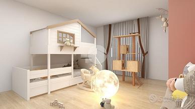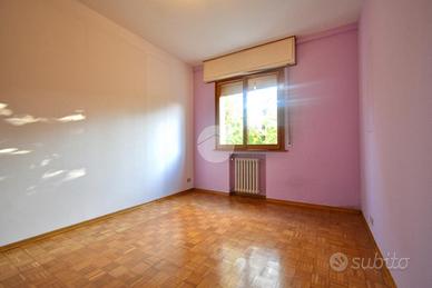 Il disimpegno ci conduce alle tre camere da letto, di cui una matrimoniale di 18 mq e due doppie di 12 mq. Queste sono caratterizzate da un parquet e ottime per essere arredate in base alle proprie esigenze.