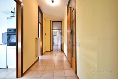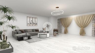 L'appartamento, sviluppato tutto su un unico livello, si apre in un lungo e spazioso corridoio di circa di 18 mq che distribuisce e ci accompagna negli ambienti della casa.