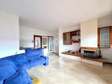 L'appartamento, costruito nel 1976, si distingue per le ampie metrature e la funzionalità degli ambienti. L'ingresso conduce a un soggiorno luminoso con camino, che dona calore e accoglienza all'ambiente. La cucina abitabile, dotata di portafinestra, si affaccia su un ampio terrazzo, ideale per pranzi all'aperto o momenti di relax.