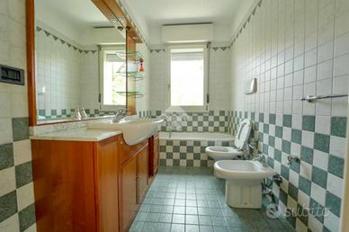 Un disimpegno offre riservatezza alla zona notte, composta da una camera matrimonialre di 15 mq, due camere singole e due bagni, di cui uno cieco con box doccia ed uno finestrato con vasca.