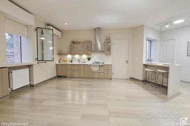 L'abitazione accoglie in uno spazioso soggiorno arricchito da un angolo cottura a vista e da un camino in muratura. L'ambiente è inoltre servito da un balcone che gli dona luce naturale ed un pratico sfogo esterno.
