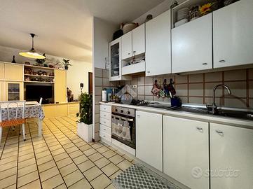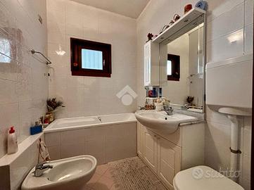 Un comodo disimpegno accompagna alla zona notte in cui è possibile trovare tre camere da letto, di cui due matrimoniali e una singola, ed ai due bagni, uno finestrato con vasca e uno cieco con box doccia e attacchi per la lavanderia.