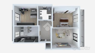L'immobile è ristrutturato e offre un ambiente accogliente e funzionale. La disposizione interna comprende due camere da letto, un bagno, e due ulteriori locali che sono adibiti a soggiorno e cucina abitabile. Il ripostiglio completa lo spazio abitativo. La presenza di due balconi garantisce luminosità e uno spazio esterno privato.