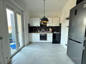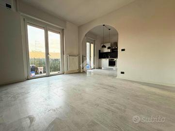 In zona centrale e comoda ai servizi, appartamento quadrilocale parzialmente ristrutturato, situato al secondo piano di una palazzina servita da ascensore. L'ingresso si apre su un disimpegno che distribuisce in maneira organizzata tutti gli ambienti della casa. La zona giorno è composta da un cucina con soggiorno in stile open space, molto luminoso e con accesso ad un grazioso balcone. La zona notte comprende due camere da letto, una matrimoniale e una doppia, anch'esse con affaccio su un secondo balcone e caratterizzate da ottima luminosità. Inoltre, dal disimpegno si accede al ripostiglio e al bagno dotato di doccia. Completano la proprietà una cantina e un comodo box auto.