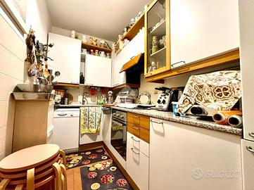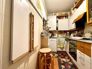 L'ingresso è direttamente sulla zona giorno, un luminoso soggiorno con angolo cottura precede l'accesso all'ampia balconata, ben esposta per tutto l'arco della giornata.
