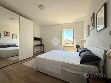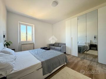 La zona notte è composta da due camere da letto spaziose e soleggiate, un bagno finestrato finemente ristrutturato e un comodo ripostiglio.