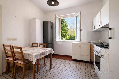 SANTO STEFANO DI MAGRA Proponiamo in vendita intera porzione di palazzina, libera su tre lati e adiacente su un solo lato ad altro fabbricato, composta da appartamento al primo piano e locale al piano terra, entrambi con ingressi completamente indipendenti. L'appartamento nasce come ampio 2,5 vani con spazi generosi e ben distribuiti. Attualmente la disposizione interna è stata adattata alle esigenze degli attuali proprietari; la suddivisione non risulta coerente con la planimetria originaria ma potrà essere facilmente riportata alla configurazione iniziale oppure personalizzata in base alle necessità di chi acquisterà. Sono presenti un bagno finestrato di buona metratura e un balcone privato. Al piano terra troviamo un locale attualmente adibito ad ambulatorio, con ingresso separato rispetto all'abitazione, composto da sala d'attesa, bagno di servizio e due stanze operative. Il locale offre inoltre la possibilità di valutare un eventuale cambio di destinazione d'uso, ampliando così le potenzialità dell'immobile. Completa la proprietà una corte esterna frontale che, pur non essendo attualmente utilizzata come parcheggio, può essere organizzata come area di sosta privata. Soluzione versatile, ideale per chi desidera un'abitazione con spazio professionale indipendente oppure per chi cerca un investimento con più possibilità di utilizzo.