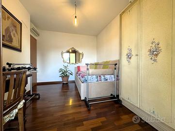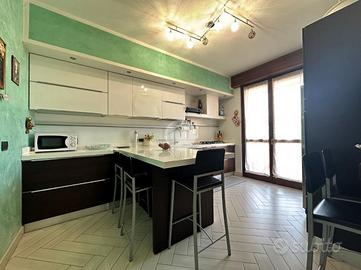Santo Stefano Ticino: in zona tranquilla ed in posizione strategica per raggiungere, anche a piedi, sia il Centro Paese che la Stazione Ferroviaria. In elegante contesto di recente costruzione, totalmente privo di barriere arichitettoniche, dotato di ascensore fin dal piano seminterrato. Ubicato all'interno di una scala di sole 2 unità abitative con il pianerottolo dedicato ad un solo appartamento. Abitazione dalle dimensioni ragguardevoli ed impreziosito da finiture eleganti e curate in ogni singolo dettaglio. Uno dei tanti punti di forza è la totale indipendenza su 4 lati, rispetto ad altri appartamenti, oltre ad una tripla e luminosa esposizione. All'ingresso veniamo accolti direttamanente in sala; la prima cosa che ci colpisce è l'elegante camino a legna ottimo sia dal punto di vista estetico che funzionale. La pavimentazione, così come in tutta la casa, salvo cucina e bagni, è in parquet con pose lineari o a 'lisca di pesce'. La zona living è altresì accessoriata da 2 porte-finestra, una con uscita sul balcone mentre l'altra con accesso all'ampio ed estremamente godibile terrazzo, ottimo durante la bella stagione. La cucina è comodamente abitatile ed ideale anche in presenza di nuclei familiari numerosi; anch'essa con uscita sul balcone e rifinita con gres porcellanato chiaro con effetto parquet. Il disimpegno ci conduce al reparto notte, anch'esso caratterizzato da spazi e metrature davvero funzionali e generose. Le 3 camere da letto, 2 delle quali con uscita sul rispettivo balcone, sono ideali per essere utilizzare come matrimoniale, camere doppie, studi o altre svariate destinazioni, il tutto nella massima godibilità e praticità. I bagni sono 2, entrambi finestrati, ambedue con la presenza di tutti i classici sanitari; un bagno accessoriato da doccia, l'altro da un'elegante vasca/doccia idromassaggio e la presenza di un box doccia ideale per rendere più agevole il doppio utilizzo. Il riscaldamento, gestito da caldaia autonoma e termostato privato, è dotat...