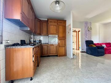 L'accesso è diretto nella zona giorno composta da soggiorno open-space e cucinotto con accesso alla piccola corte esterna privata dal quale si può creare ingresso indipendente; tramite piccolo disimpegno abbiamo accesso alla zona notte con due camere da letto ed un bagno finestrato dotato di vasca.